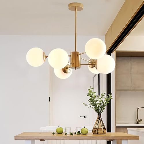 Modern koppar hängande lampa sfär glasboll ljuskrona mjölk vit glasboll lampskärm taklampor köksö, bar, matsal, bänk, café ljuskronor lamparmatur (guld), Ø75 cm/6 huvuden