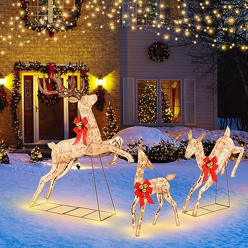 COSTWAY 3-delad LED-ren familj, juldekoration, upplyst ren julfigur med 440 varma vita lampor, julbelysning, juldekoration för utomhus- och inomhusbruk