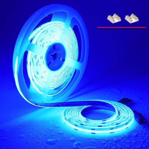 TOPAI 12V COB LED Ijusremsa Blå 5M Vattentät IP65 480LEDs/M CRI>90 Självhäftande Punktlös Flexibel Skärbar för sovrumsskåp, sovrum, belysning under skåp