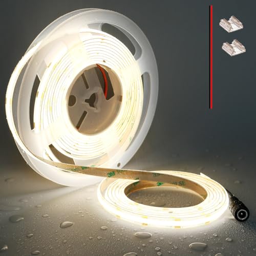 TOPAI 12V COB LED Ijusremsa 4000K Naturvit 5M Vattentät IP65 480LEDs/M Superljus 4000Lm CRI>90 Självhäftande Punktlös Flexibel Skärbar för sovrumsskåp, sovrum, belysning under skåp
