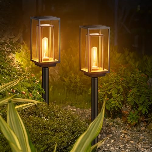 NEOVSUNY Solcellslampor för utomhusbruk trädgård,4st solcellslampor för utomhusbruk med varmvit LED volfram,vattentät solcell lampor landskap belysning för trädgård gångvägar gräsmatta gårdsdekoration