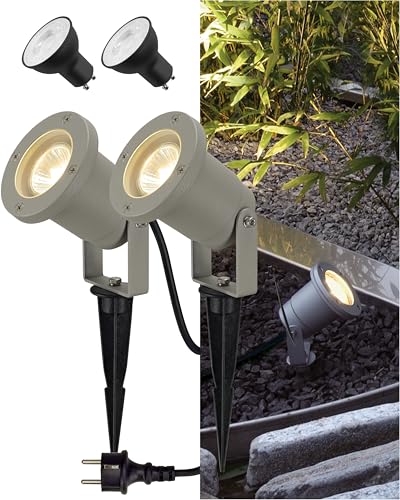 SLV NAUTILUS XL 2-pack | Utomhuslampa för belysning av trädgård, terrass, gångar, damm, utomhusbelysning | IP65, GU10, 1,5 m kabel, med kontakt, grå