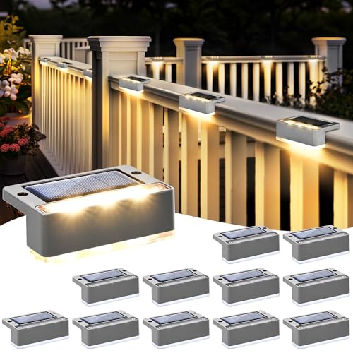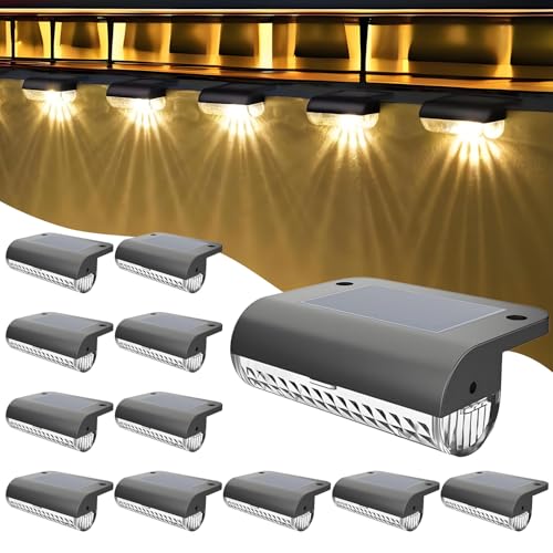 Solpex 12 stycken solcellslampor för utomhusbruk, varmvit, trappljus, vattentät, LED-belysning för utomhus, trappa, staket, trädgård, gård, terrass, takränna, dekoration (grå)