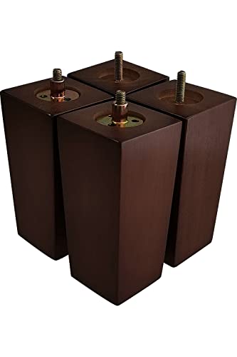 GOSCHE Trämöbler ben 15 cm, fyrkantiga soffben set med 4, bruna moderna ersättningsmöbler fötter för sängskåp stol skåp fåtölj, familj gör-det-själv soffa fötter med skruvar monteringsplatta