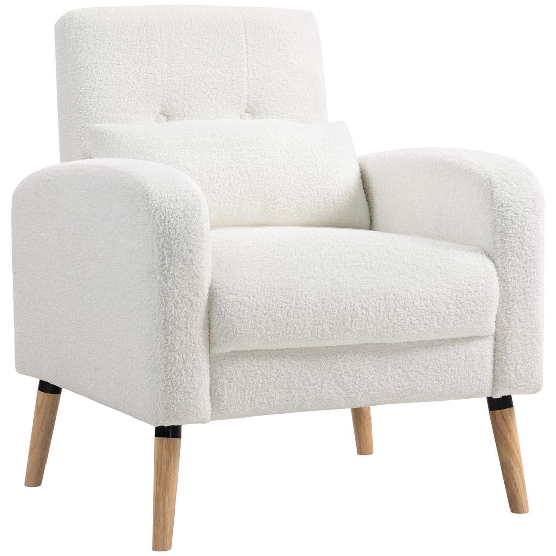Vit fåtölj med kudde, ben av gummiträ – mysigt stöd