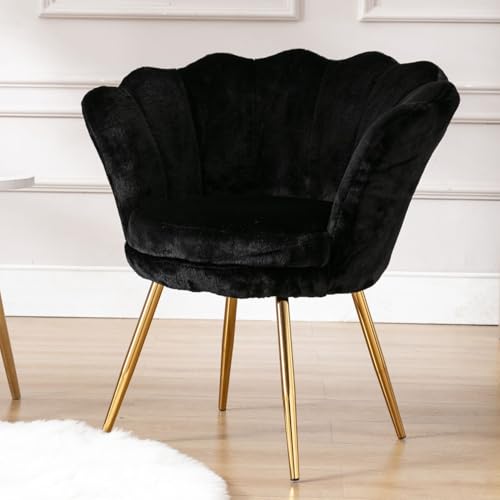 chairus Sminkbordsstol, mussla fåtölj av teddytyg armstödsstol loungefåtölj med gyllene ben armstödsfåtölj för vardagsrum, svart
