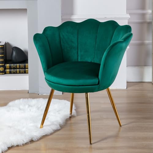chairus Sminkbordsstol, mussla fåtölj av sammet, armstödsstol, loungefåtölj med gyllene ben, armstödsfåtölj för vardagsrum, grön