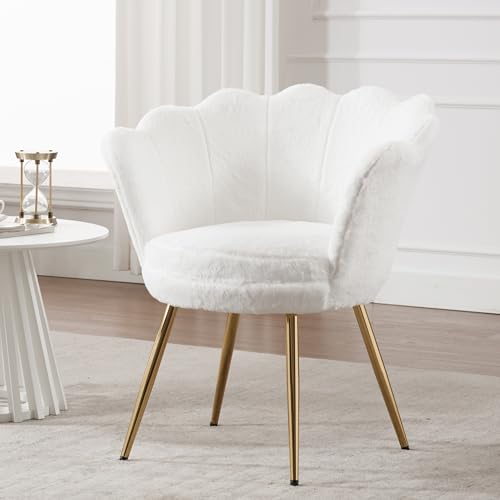 chairus Sminkbordsstol, mussla fåtölj av teddytyg armstödsstol loungefåtölj med gyllene ben armstödsfåtölj för vardagsrum, vit
