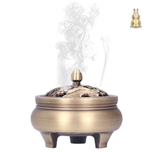 Vintage lotus rökelse brännare, Lotus form rökelse brännare fontän hållare, mässing rökelse hållare, mässing rökelsehållare hållare antikt mässingsbrännare lock 3-ben buddha prydnad