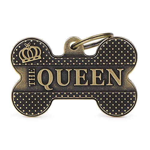 My Family Anpassad ID-skylt för hund Made in Italy, Ben XL "The Queen", Gratis graverad hund namnskylt, Engelsk mässing, Bronx Collection