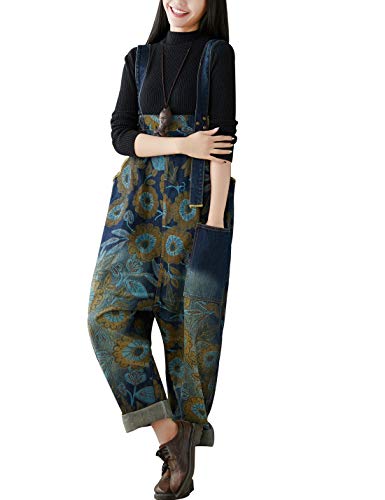 Yeokou Dam lös säckig denim bred ben droppe gren jumpsuit sparkdräkt overaller, Stil 24 blå, One Size