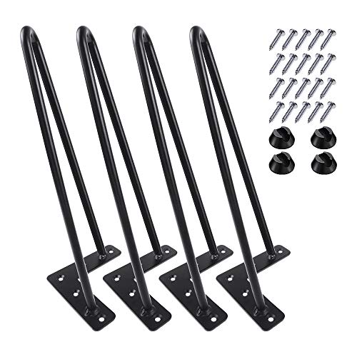 MSOBAIW 30 cm hårnålsben set med 4, gör-det-själv metall bordsmöbler ben idealiska för matbord, skrivbord, 3/8 tum diameter mitten av århundradet modern stil (30 cm, svart)