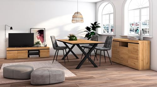 Skraut Home - Vardagsrumsmöbelset | bord 200 svarta ben x 10 gäster | 120 TV-skåp | credence/skänk 140 | ek och svart | industriell stil