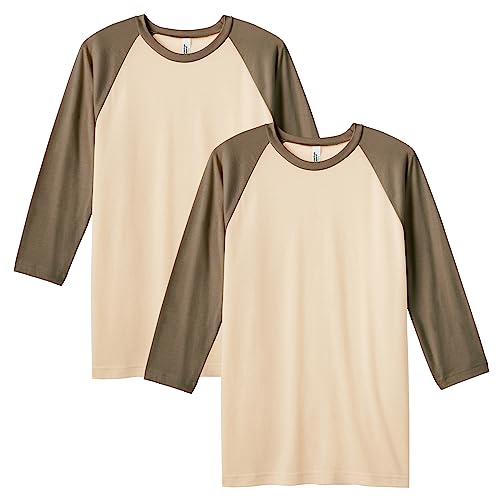 American Apparel unisex CVC Raglan t-shirt, stil G2003CVC, 2-pack, Ljung ben/ljung armé (2-pack), XL