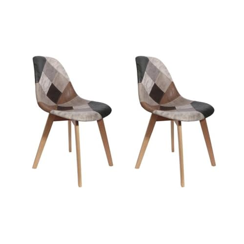 HOME DECO FACTORY, set om 2 matstolar i skandinavisk stil, patchwork-tyg, ben i bok, fullt och svängt ryggstöd, bekväm och elegant, att montera, brun, 46 x 85 x 55 cm
