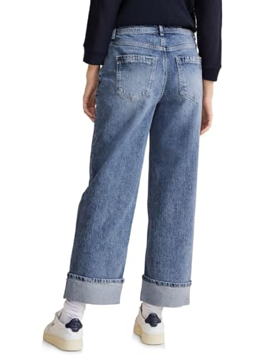 Street One dam stil denim-breda ben, casualfit byxor, Mörkblå tvättad tvätt, 28W x 32L