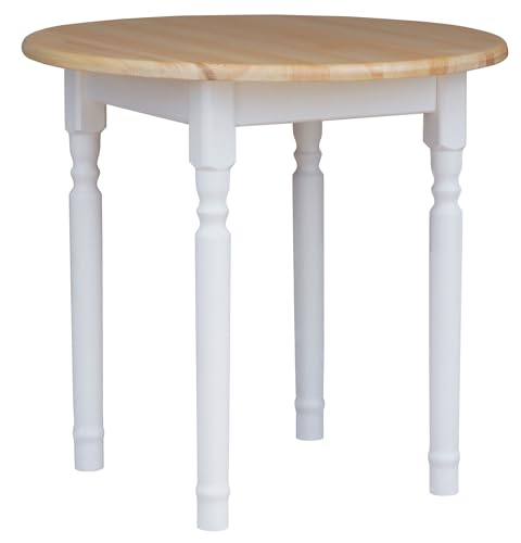 Runt matbord i lantlig stil – vita ben, bordsskiva färg lackerad furu (Ø 90 cm)