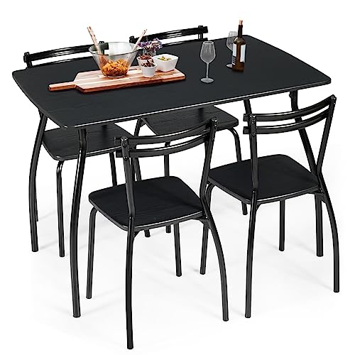 Giantex Matbord med 4 stolar, bordsset och 4 matsalsstolar i metallram med ergonomiskt krökt ryggstöd och halkfria ben, för hem, vardagsrum, kök, modern stil, svart
