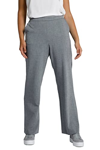 Ulla Popken Damer stora storlekar plus size byxor, breda, raka ben, komfortlinning, stretch 800615, Grå melange, 44 SE