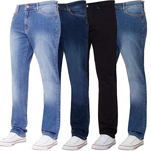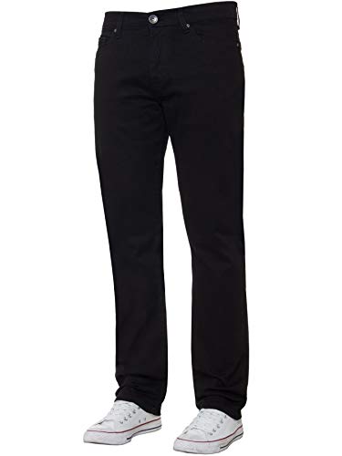 Enzo Herr klassiska raka ben stretch jeans basic arbete denim byxor alla midjestorlekar, Svart, 36W x 30L