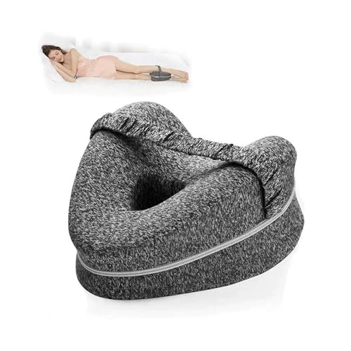 LITSPOT Knäkudde för sidosovare, ergonomisk benkudde, minnesskum, sidosovkudde med kylande överdrag, ortopedisk förvaringskudde för optimalt stöd, grå