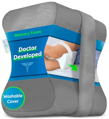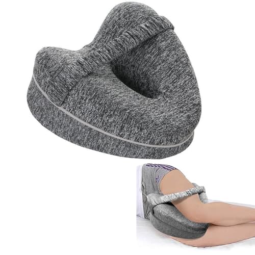 Läkareutvecklad knäkudde mörkgrå färg – Ortopedisk minnesskumkil för sidosovare, ischias, smärta i nedre delen av ryggen – Benkudde för sidosömn – Handbok skriven av läkare ingår