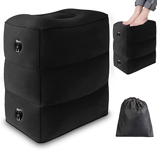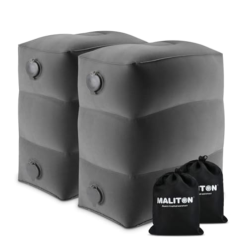 Maliton Uppblåsbart fotstöd för resor | flygplanssäng för barn | justerbar höjd benkudde | gör en platt säng för barn och småbarn | perfekt för flygplan, tåg, bil (mörkgrå, 2-pack)