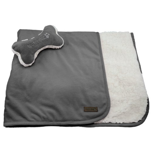 FouFou Dog Luxe Sherpa valpfilt set med benkudde, kolgrå