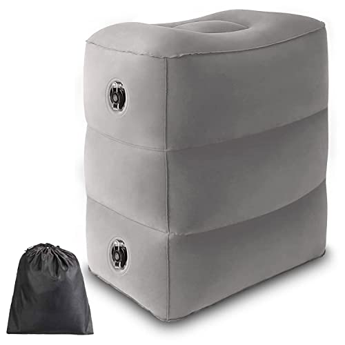 Maliton Uppblåsbart fotstöd för resor | flygplanssäng för barn | justerbar höjd benkudde | gör en platt säng för barn och småbarn | perfekt för flygplan, tåg, bil (grå, 2-pack)