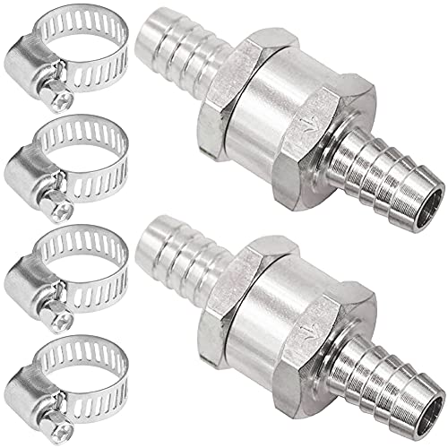 HONGECB Bränsle Backventil, Non-Return Backventil Bensin, Aluminium Bränsle Backventil, med 10 mm Fjäderklämma, för Bil Förgasare Lågtryckssystem, 8 mm, 2 Delar