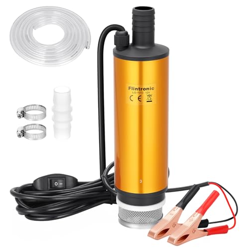 flintronic Vattenpump, dieselbränslepump 12 V 51 mm nedsänkbar pump i rostfritt stål med klämma (förbjudna bensin och brandfarliga vätskor) filter avtagbart | 4 m nätsladd | omfattning av diesel,