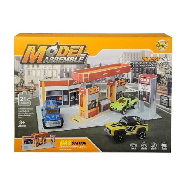 Leksaksparkering Med Garage, Biltvätt Och Bensinstation