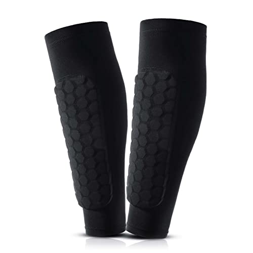 Linkidea 1 par fotbollsbenskydd för barn, ungdomar, benskyddsärmar med lång bikakedyna, halkskydd för kollisionsavvikande benskydd för fotboll fotboll basket volleyboll (Svart, XS)