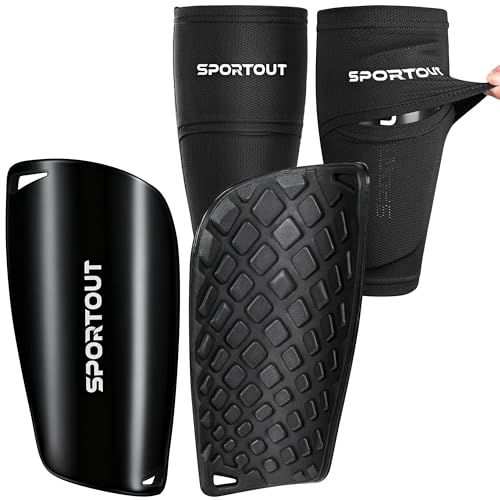 Sportout Fotboll benskydd för barn och vuxna med elastiska ärmar, ger fullt skydd för dina ben