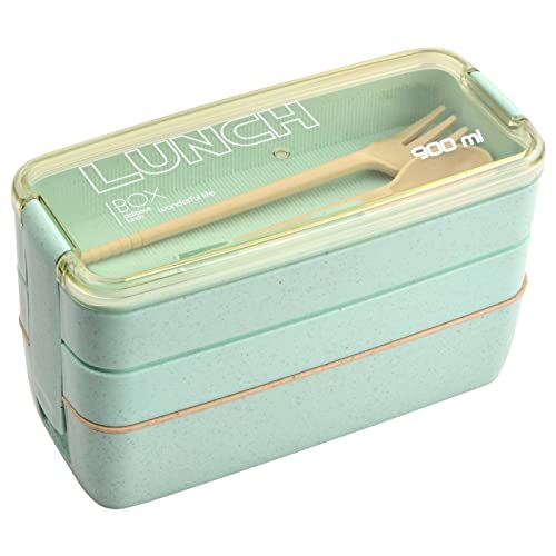 Daelesr Lunchlåda för vuxna 900 ml med 3 fack, Bento lunchlåda, återanvändbar matlåda för barn med bestick, lunchlåda, lunchlåda, måleri, förberedelser, stackable (grön)
