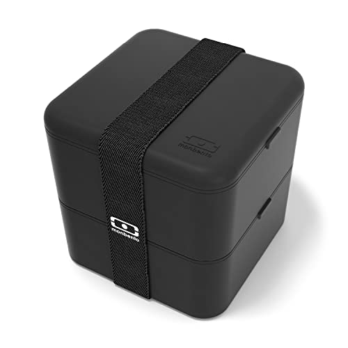 MONBENTO - Bento box MB Square Onyx - stor matlåda med fack - 2 våningar lufttät matlåda - idealisk för arbete/skola - BPA-fri - hållbar och säker - tillverkad i Frankrike - Svart