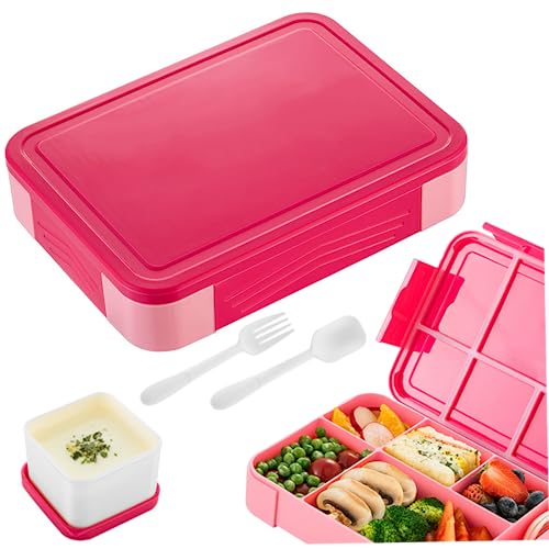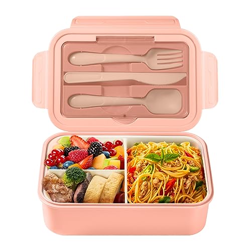 Diboniur Lunchbox, Bento lunchlåda, barn, vuxen, 1400 ml med 3 fack, läckagesäker matlåda med bestick, lämplig för mikrovågsugn i diskmaskinen, skola picknick arbete (rosa)