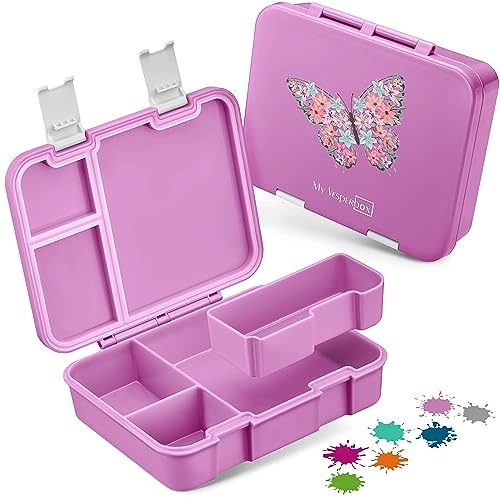 My Vesperbox – Jin- Bento Box barn – matlåda – extremt robust – matlåda – brödlåda, perfekt för dagis och skola, rosa – fjäril