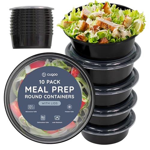 CUQOO Premium matbehållare – förpackning med 10 enkelfack rund lunchlåda | BPA-fri och livsmedelssäker snackslåda för vuxna och barn | Mikrovågsugn, diskmaskin, ugns- och fryssäker bentolåda