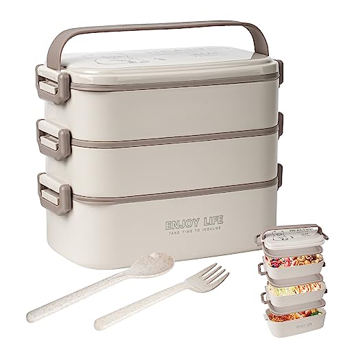 Yirochan 2 700 ml Bentolåda med 3 lager med gaffel och sked, 4-i-1 lunchlåda för vuxna, matförberedelsebehållare för män kvinnor studenter skola kontor, mikrovågsugn säker tillgänglig (kaki)