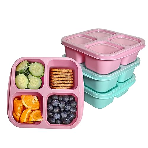 MEEYUU 4-pack snacksbehållare, bentolåda med 4 fack, återanvändbara lunchbehållare för måltider, för barn och vuxna, delade matförvaringsbehållare för skola, arbete, resor (grön/blå/rosa/lila)