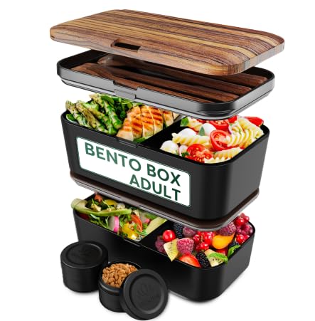 Umami Allt-i-ett-bentolåda på 1 200 ml för vuxna med 1 såsburk och 4 bestick, BPA-fri lunchlåda för män/kvinnor, 2 meal-prep-lådor för mikrovågsugn, diskmaskin och frys