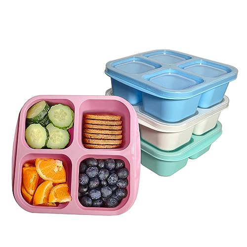 MEEYUU 4-pack snacksbehållare, bentolåda med 4 fack, återanvändbara lunchbehållare för måltider, för barn och vuxna, delade matförvaringsbehållare för skola, arbete, resor (grön/blå/rosa/vit)