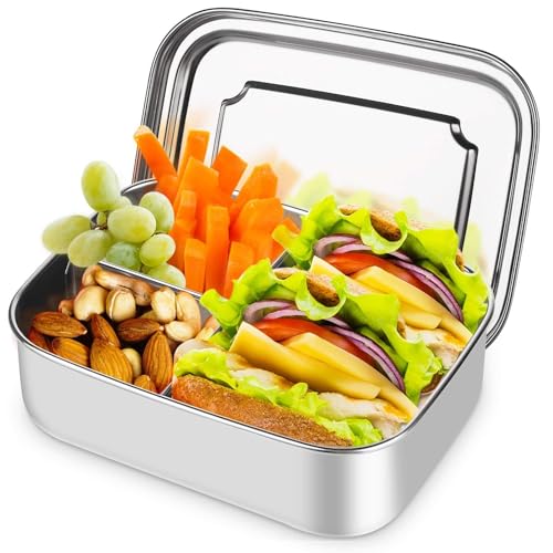 HOSPAOP Lunchlåda i rostfritt stål med fack, 1 400 ml lunchlåda i metall med 3 fack, Bentolåda, brödlåda för barn och vuxna