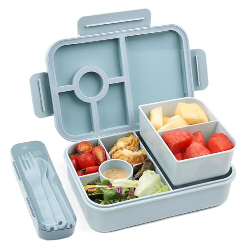 MUJUZE Lunchlåda med delade fack, lunchlåda vuxen/barn, hållbar, läckagesäker, diskmaskinssäker, salladslunchlåda, barnkammare bentolåda för skola, arbete, picknick resor (Blue)