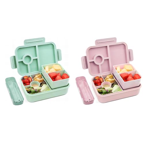 MEEYUU 4-pack snacksbehållare, bentolåda med 4 fack, återanvändbara lunchbehållare för måltider, för barn och vuxna, delade matförvaringsbehållare för skola, arbete, resor (2 x rosa och 2 x grön)