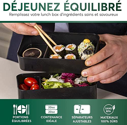 VBOK IGFE Bentolåda japansk – matlåda med fack – 3 delar bestick – matlåda med bambulock för skola och arbete, för barn och vuxna