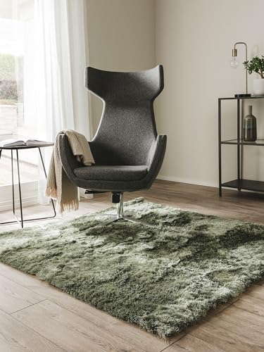 benuta Nest Luggmatta whisper – grön 150 x 150 cm – mysig mjuk matta för sovrum och vardagsrum – lättskött – lämplig för golvvärme