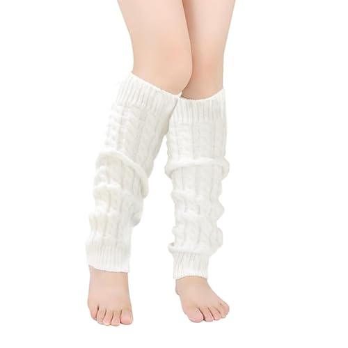 Voarge 1 par benvärmare kvinnor, vinter lång virkad stickad manschett dam för dans fitness yoga, Vit, En Storlek