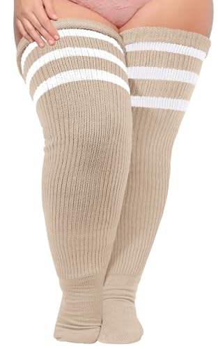 Lårhöga strumpor i plusstorlek för tjocka lår, extra långa och tjocka över knäna, benvärmare, stövelstrumpor, Beige och vit, One size
